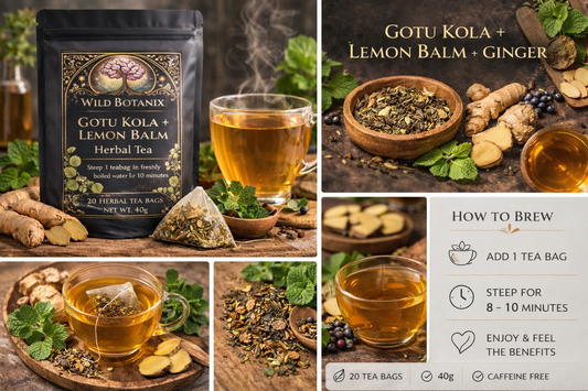 Wild Botanix Focus Flow Herbal Tea – Gotu Kola, Lemon Balm & Ginger | Natural Focus & Calm | 20 Tea Bags